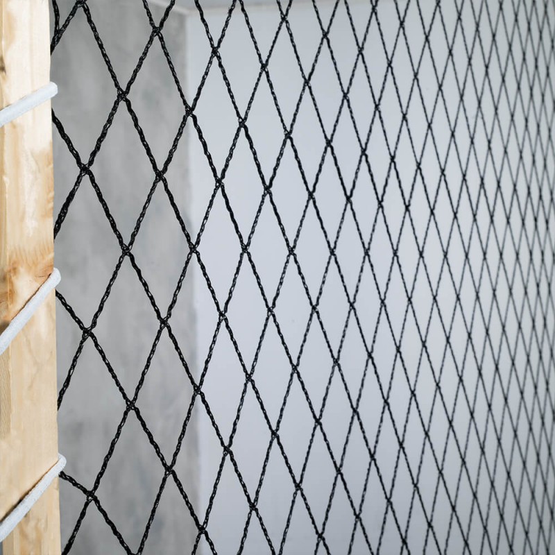 Filet de volière conçu avec des mailles losanges moyennes de 35 x 35 mm.